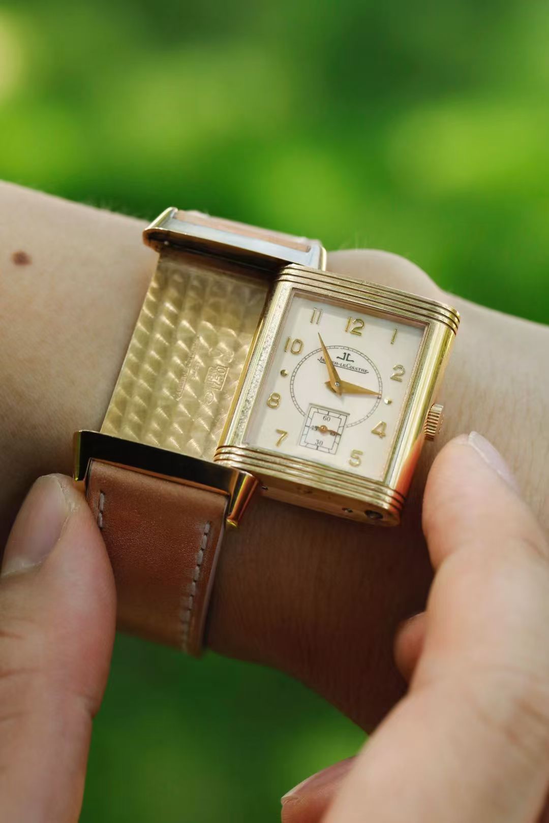 首页 > 积家|Jaeger-LeCoultre120枚限量第66枚 积家翻转 18K玫瑰金 奶酪面很油润 立体18K金阿拉伯数字刻度 方便读数 表径42X26mm最完美的尺寸