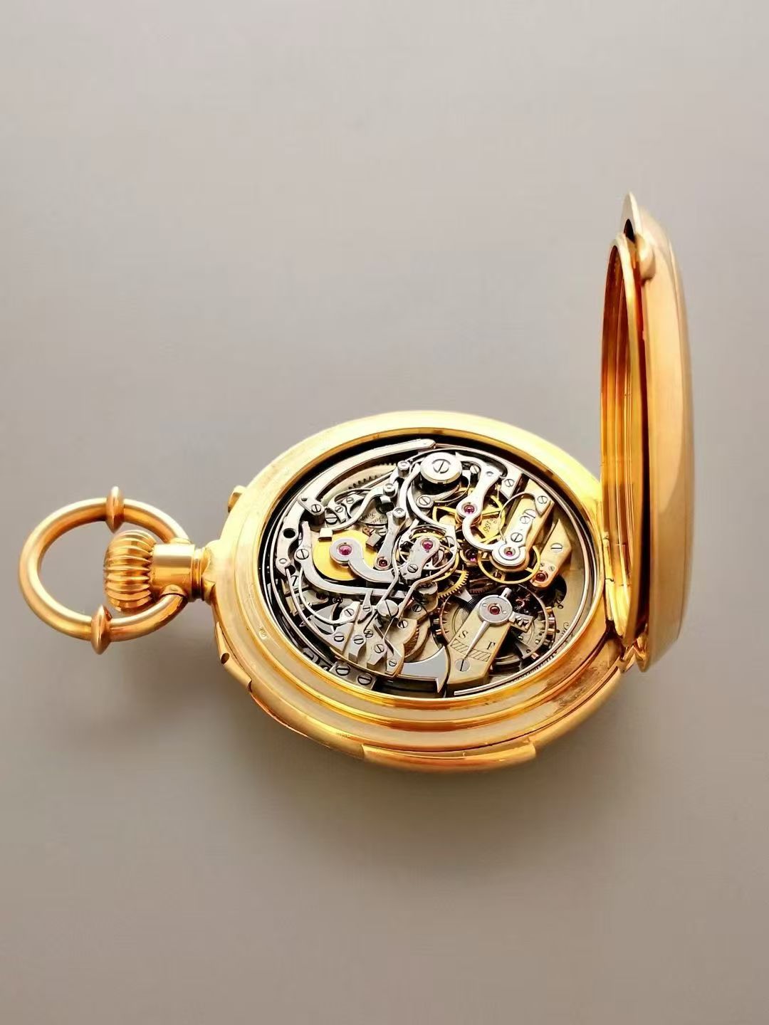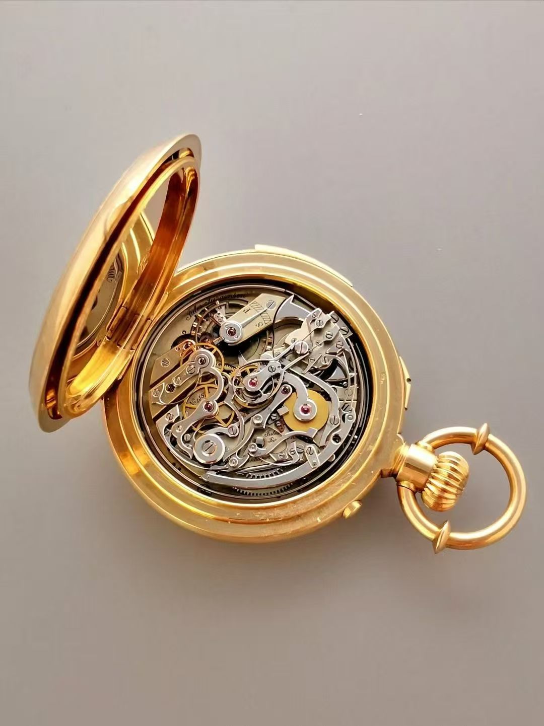首页 > 其他品牌古董怀表:瑞士Jules Jürgensen追针三问,18K金53㎜表径,珐琅盘蓝钢针,累计30分钟追针计时,开关锁止,两锤两簧三问报时,专利把环调时,高等级机芯,品牌经典款,品相完美,按键柔和,报时清亮,难得赏玩收藏佳品。