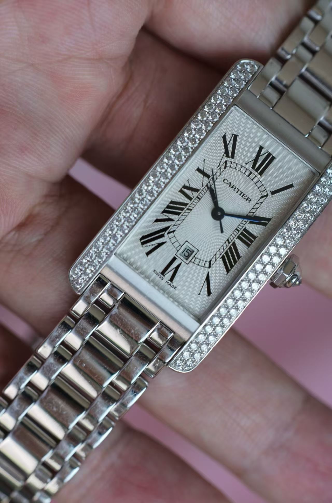 首页 > 卡地亚|CartierCartier Tank Américaine 卡地亚美国坦克系列 整表18K白金原镶钻 型号: WB7026L1