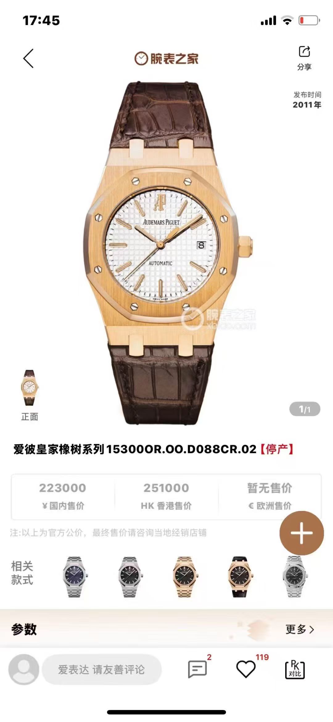 首页 > 爱彼|Audemars Piguet爱彼皇家橡树15300OR 白面 玫瑰金材质 折叠扣 11年全套 好价