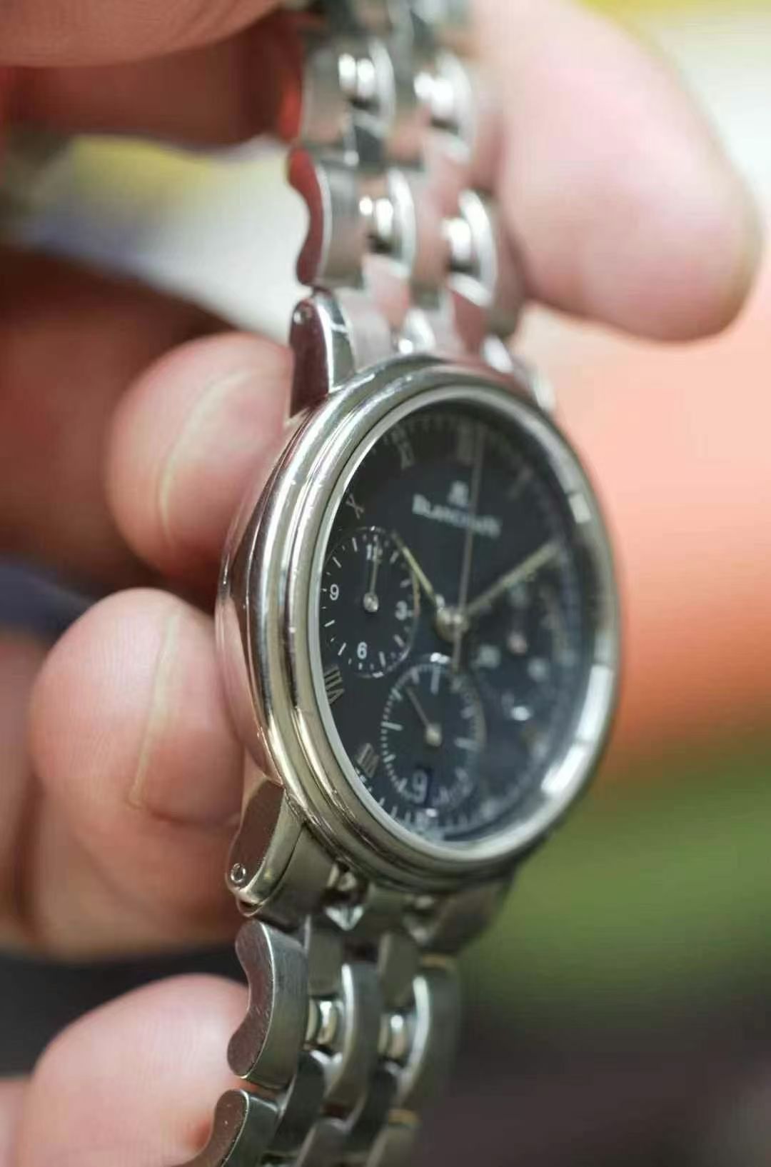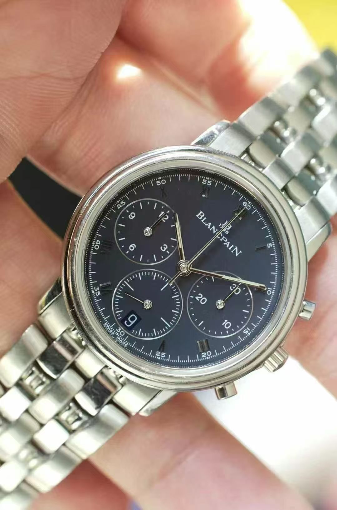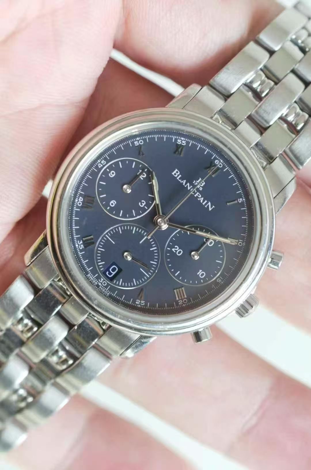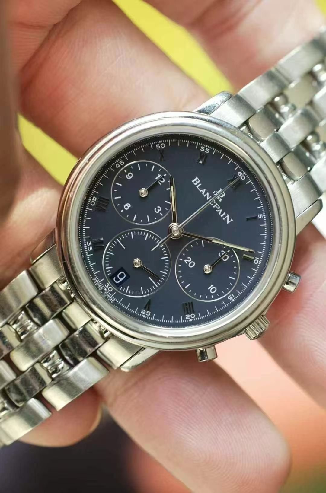 首页 > 宝珀|Blancpain宝珀 计时 34mm表径 Cal.1185自动机械 腕周190 克莱因蓝 跟朗格的蓝很相似 盘面颜色非常好看。