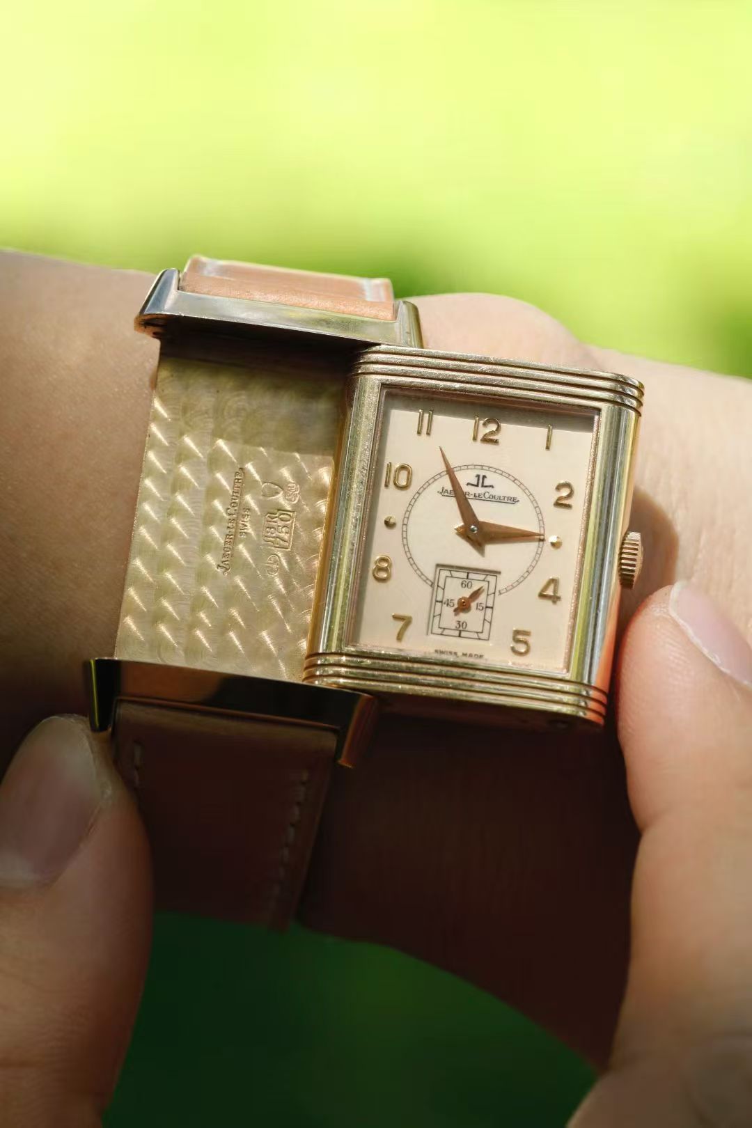 首页 > 积家|Jaeger-LeCoultre120枚限量第66枚 积家翻转 18K玫瑰金 奶酪面很油润 立体18K金阿拉伯数字刻度 方便读数 表径42X26mm最完美的尺寸