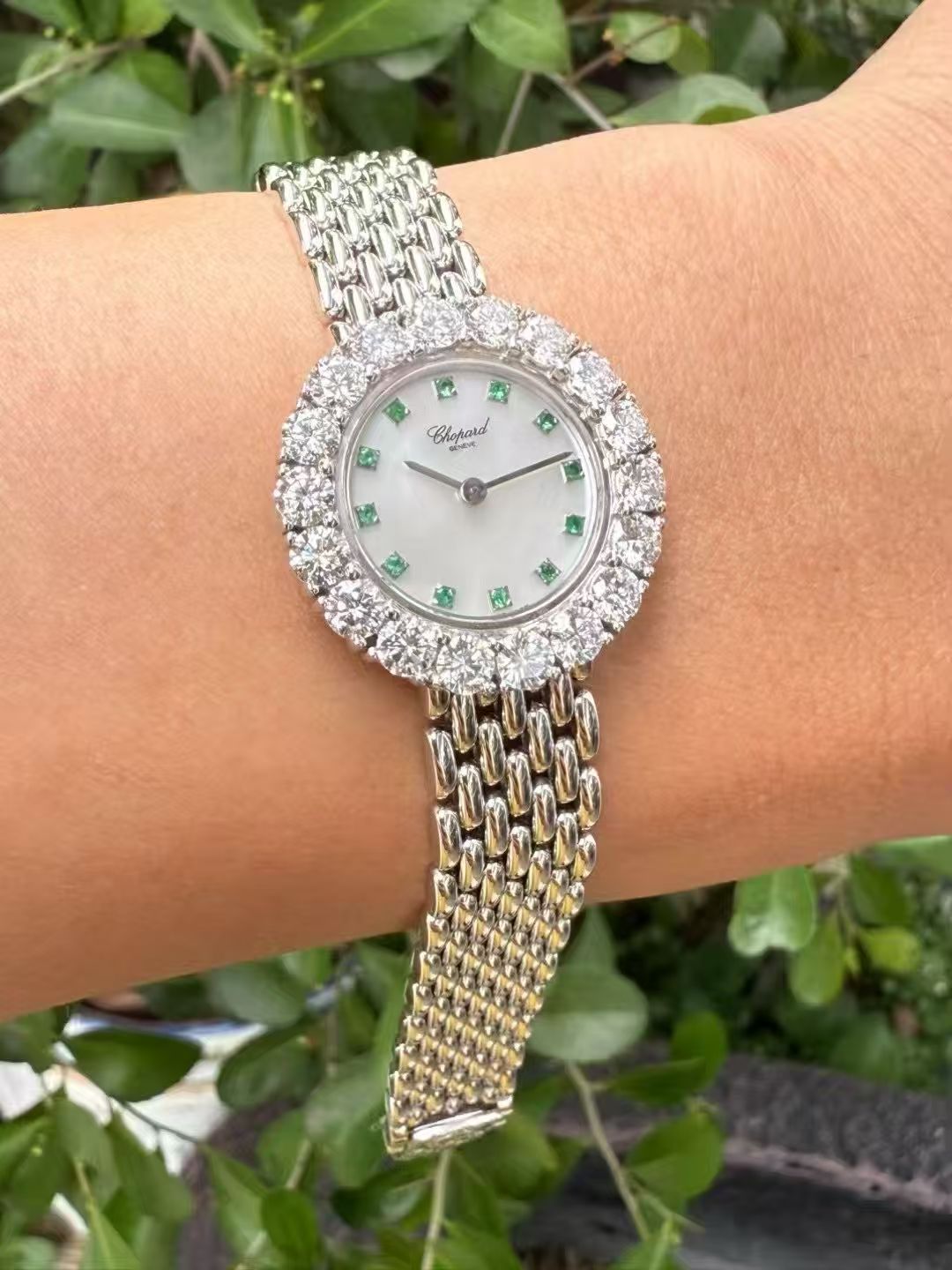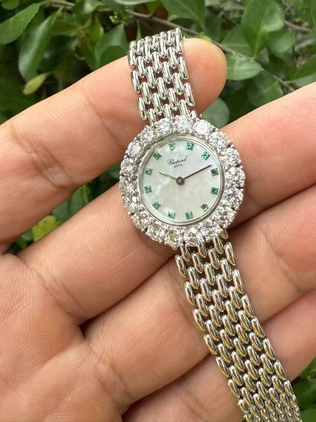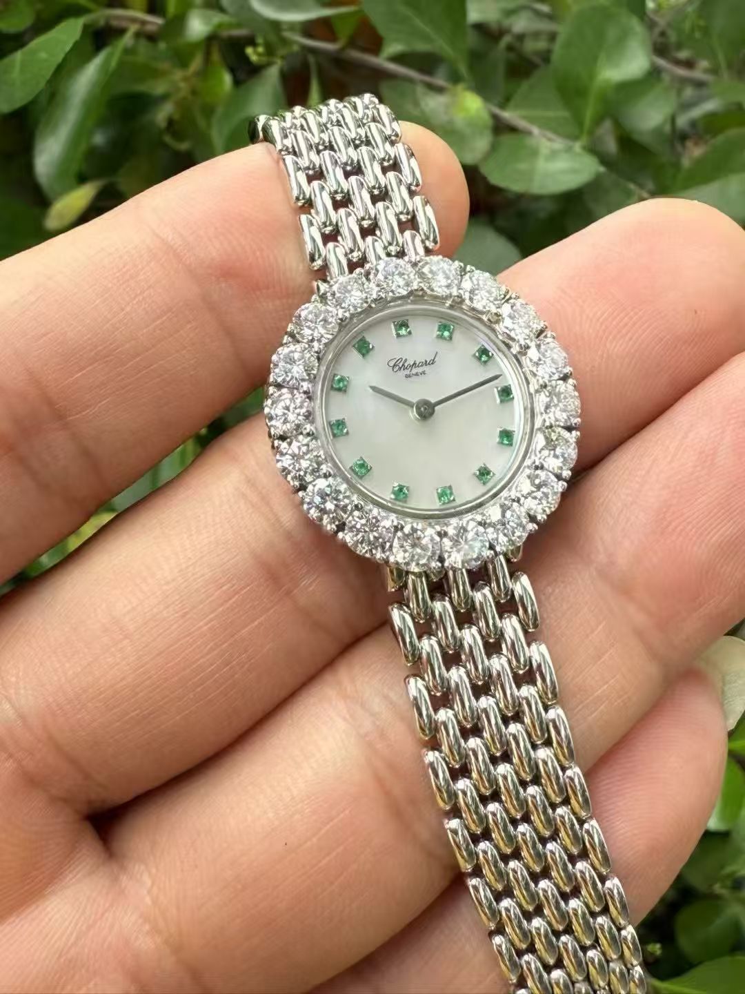 萧邦 18k白金手动 珠宝腕表 表径24mm整表51.5克 腕周165mm可拆卸表节 原镶超大钻石
