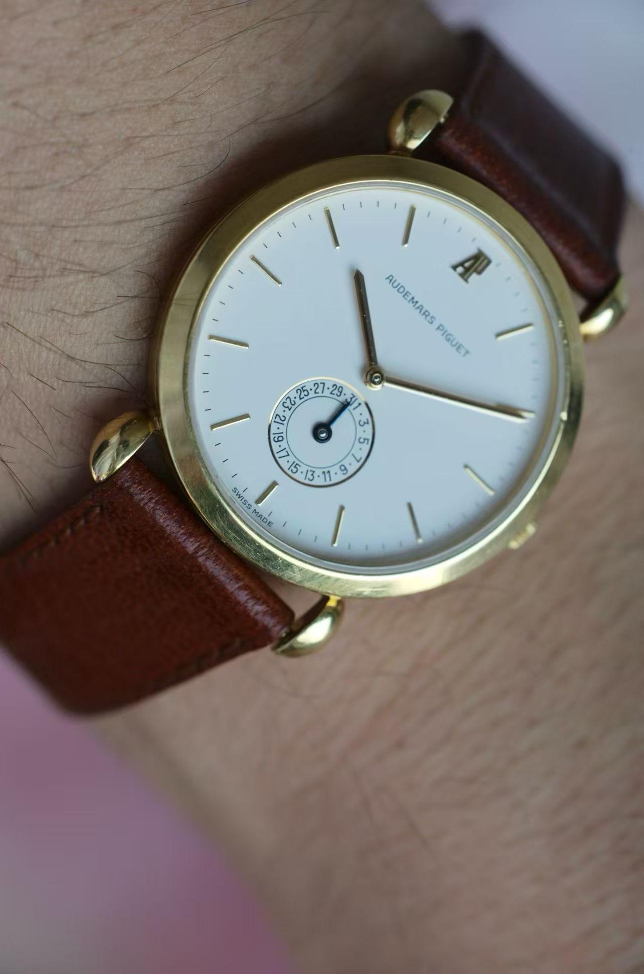 首页 > 爱彼|Audemars PiguetAP 爱彼 AUDEMARS PIGUET 18K黄金 水滴表耳 手动机械表 日历功能 表径32mm 稀缺款