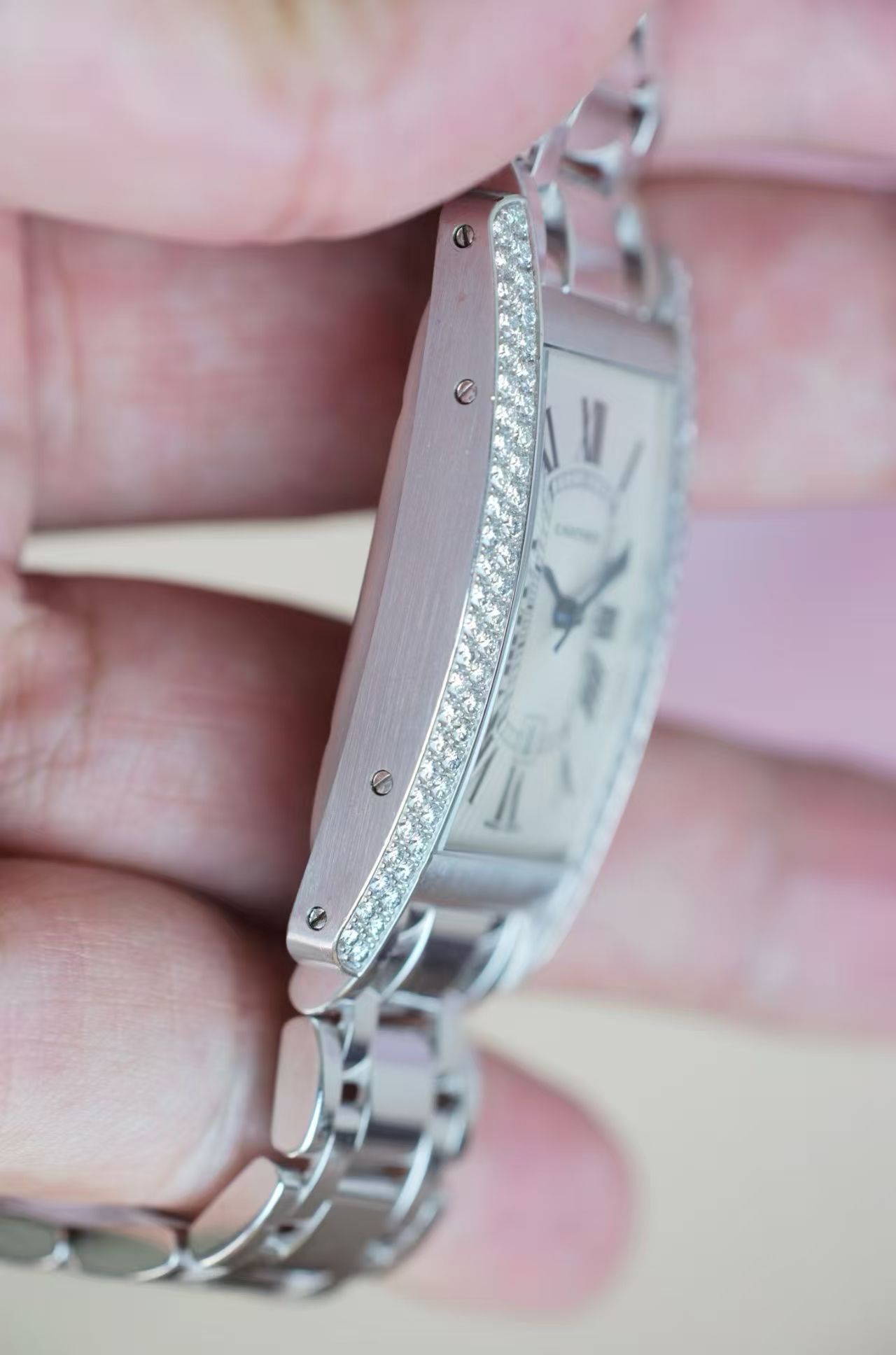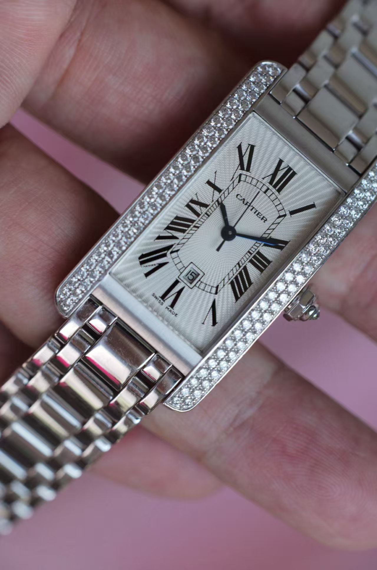 首页 > 卡地亚|CartierCartier Tank Américaine 卡地亚美国坦克系列 整表18K白金原镶钻 型号: WB7026L1