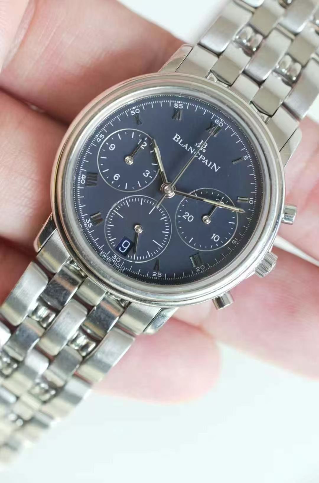 首页 > 宝珀|Blancpain宝珀 计时 34mm表径 Cal.1185自动机械 腕周190 克莱因蓝 跟朗格的蓝很相似 盘面颜色非常好看。
