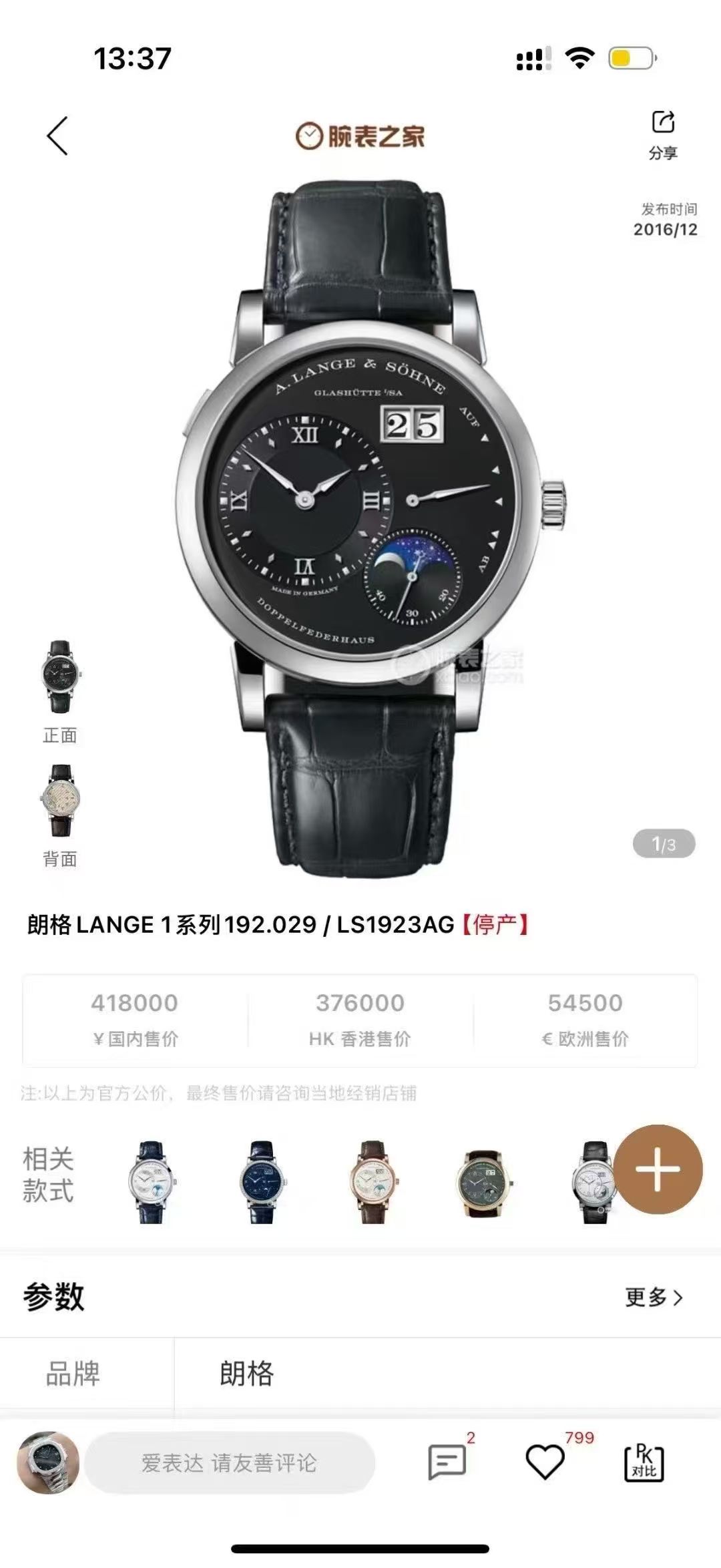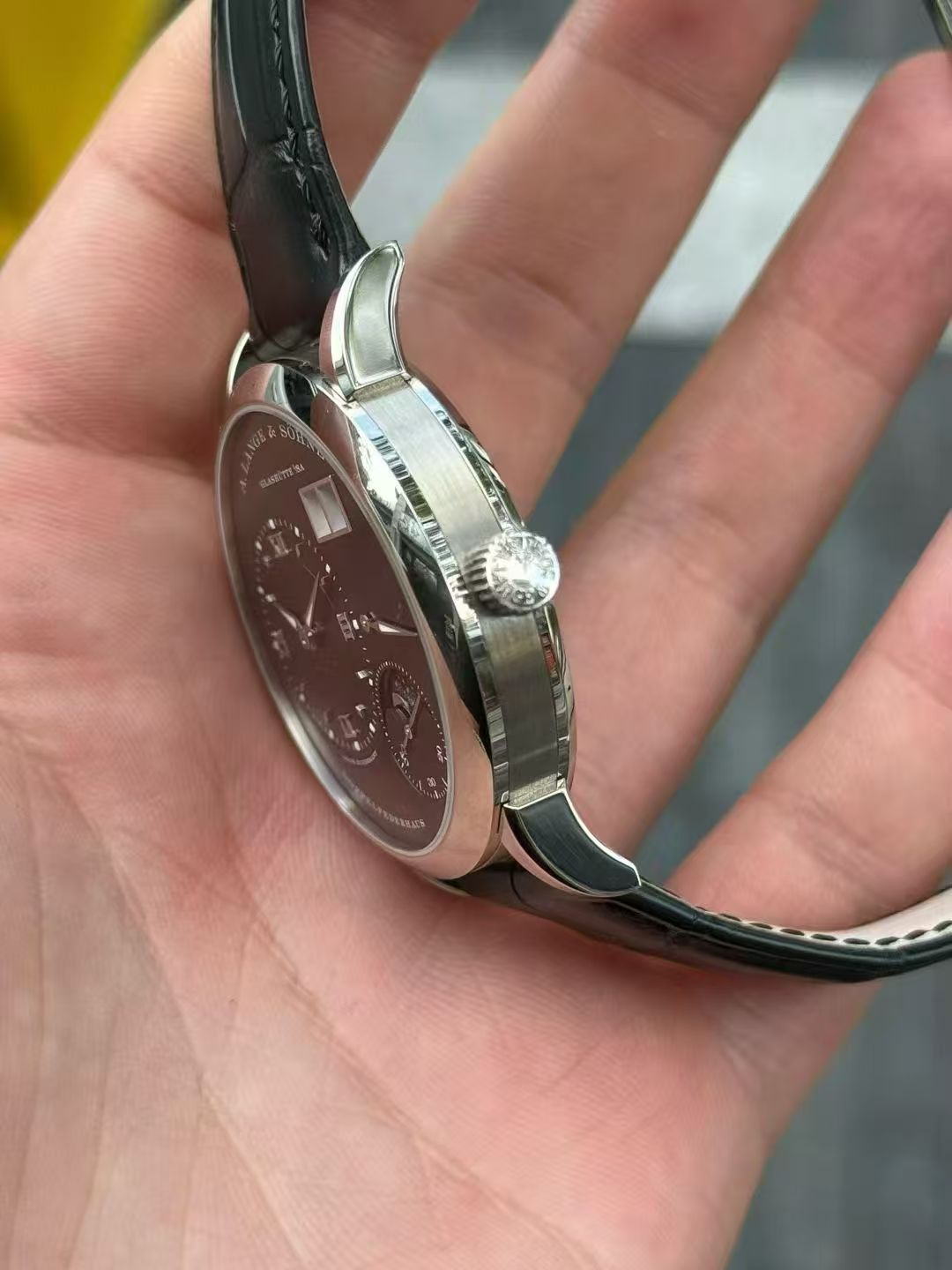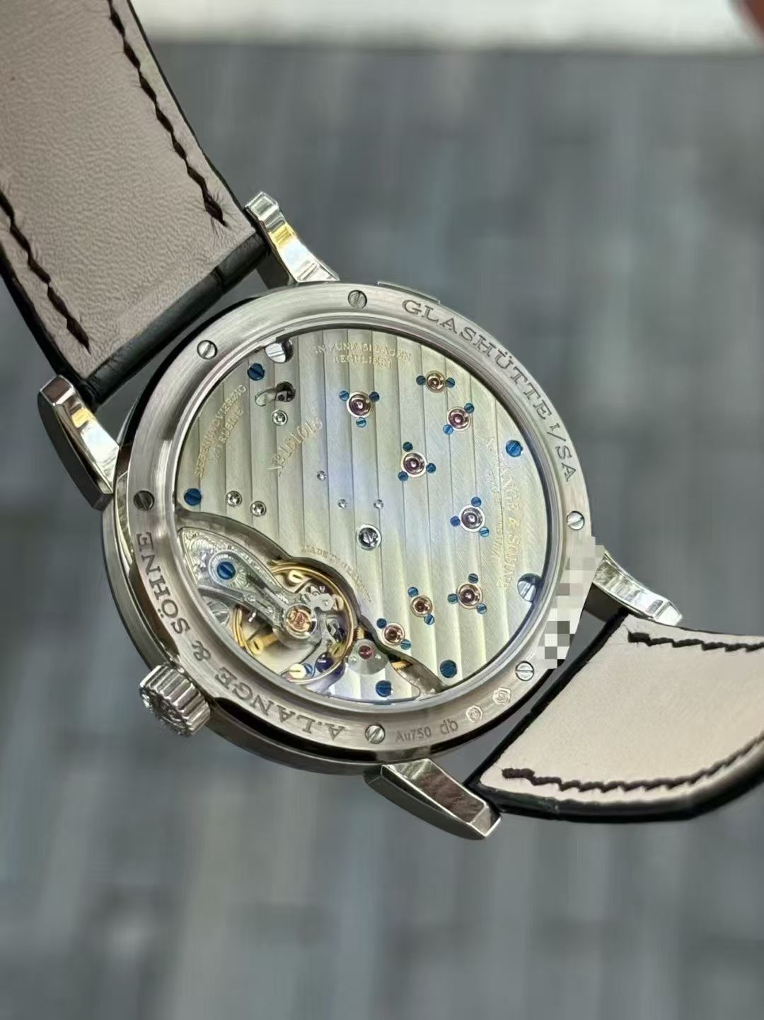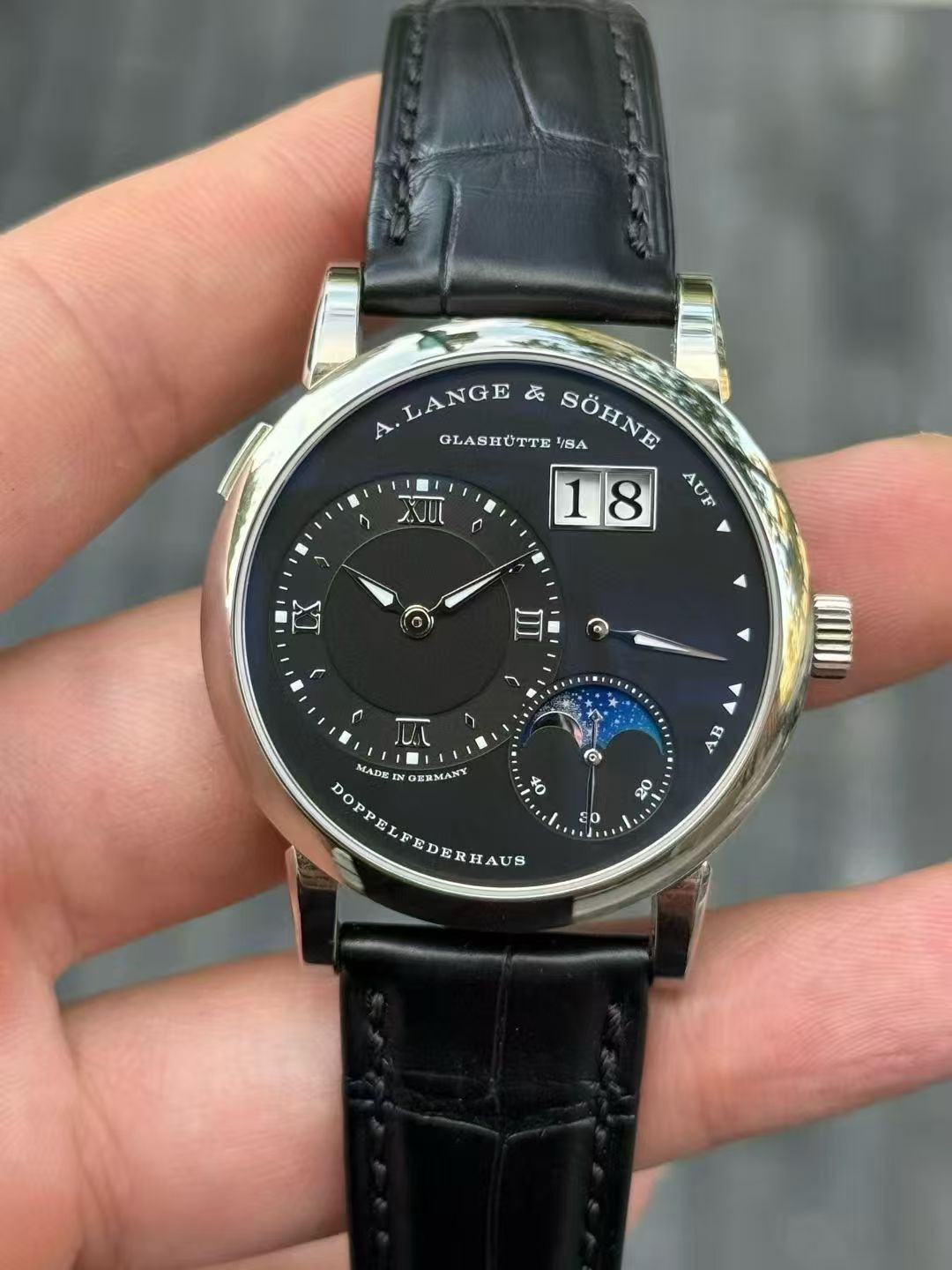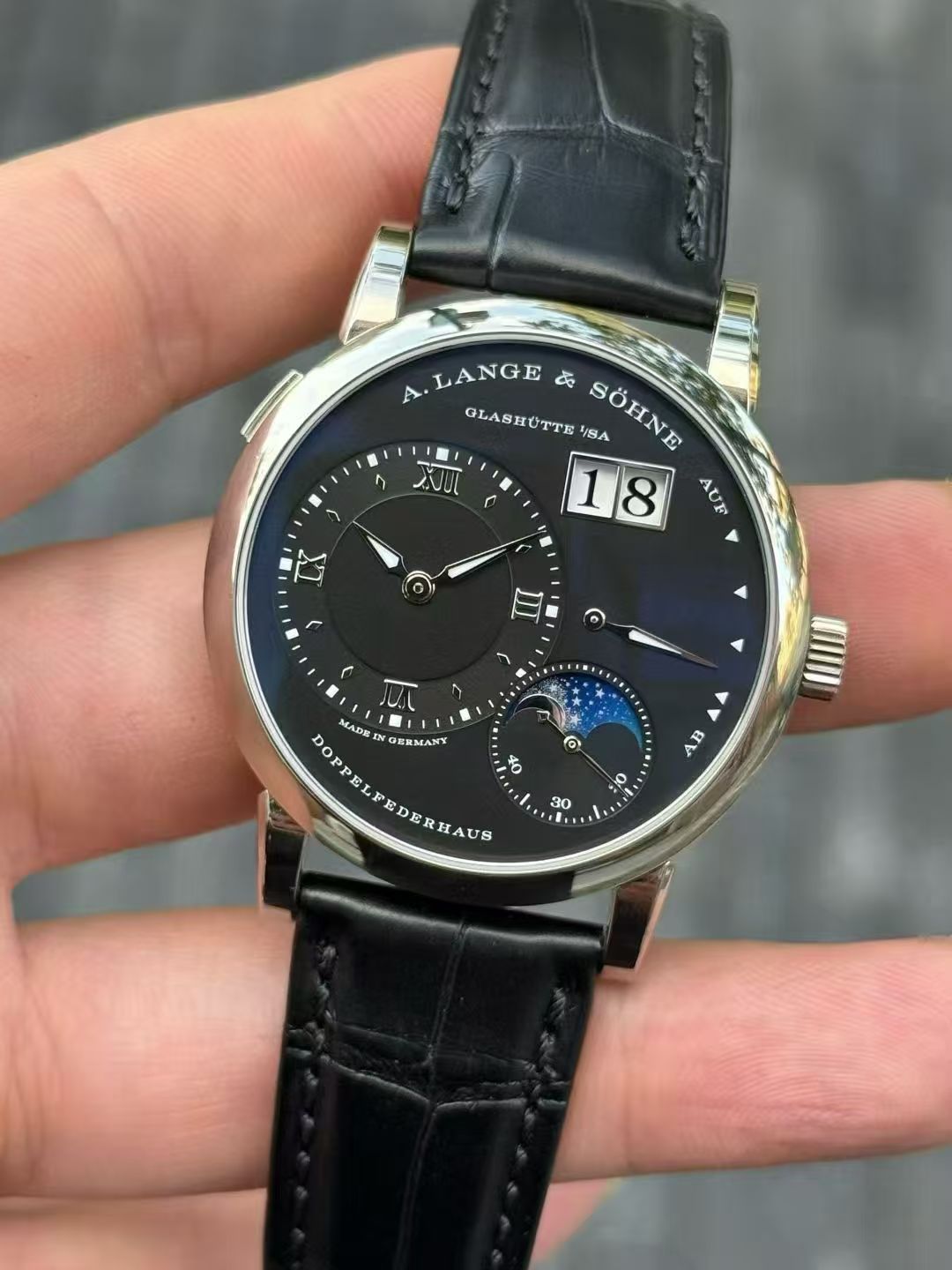首页 > 朗格|A. Lange & Söhne朗格1号系列192.029,24年12月全套。白金黑面,新款昼夜月相同窗显示,夜光指针刻度,18K白金折叠表扣!!!公价418000,产量稀少,上手无敌好看